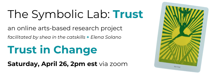 - Elena Solano + I continue our online arts-based research project with Trust in Change Saturday, April 26 at 2pm est—we’d love to see you there! Read what participants had to say about the first session!