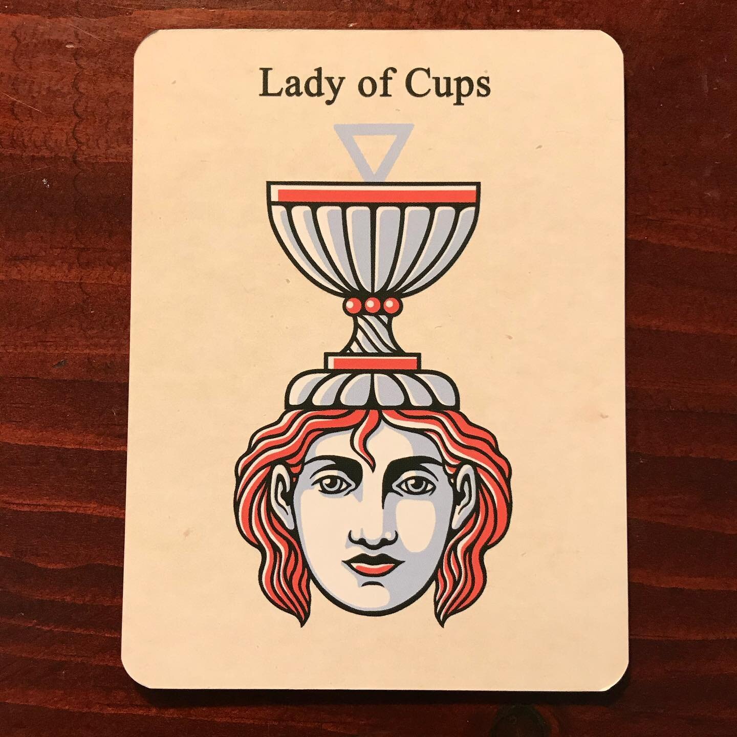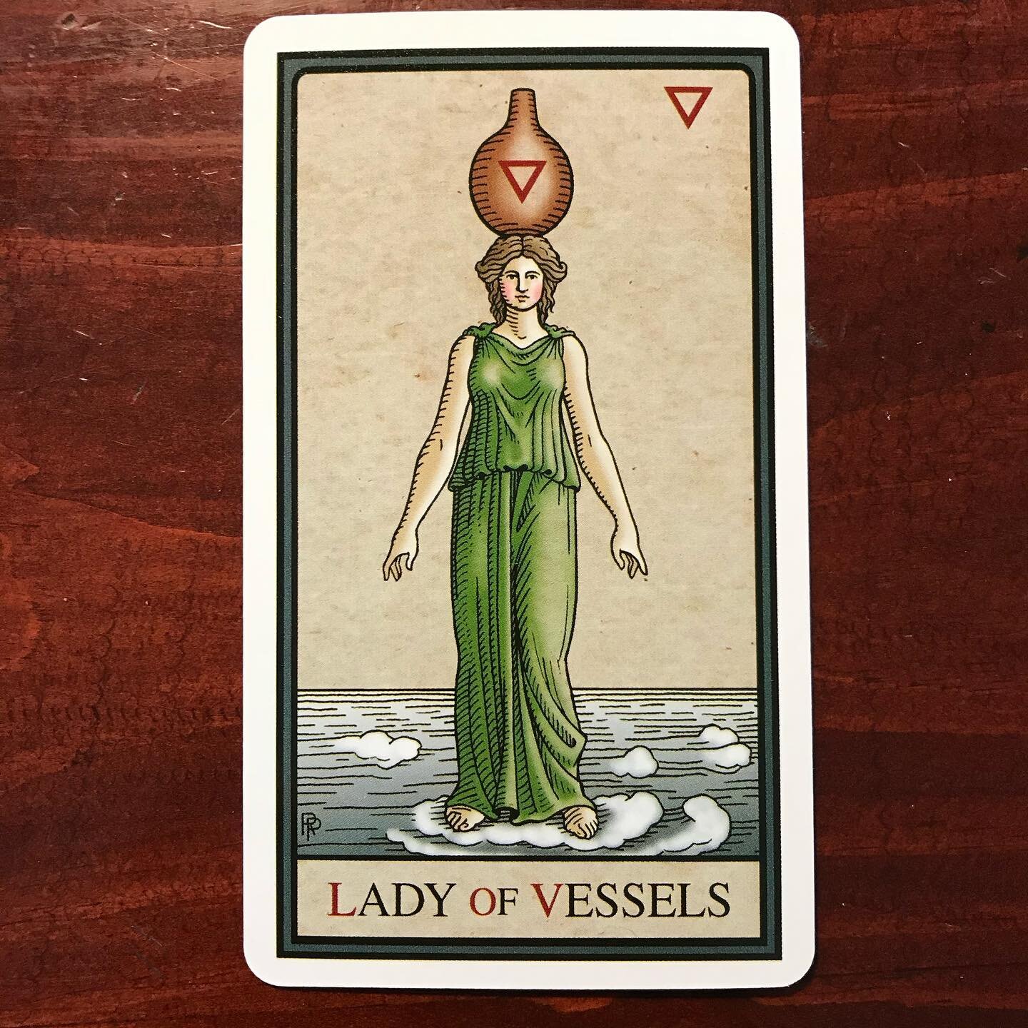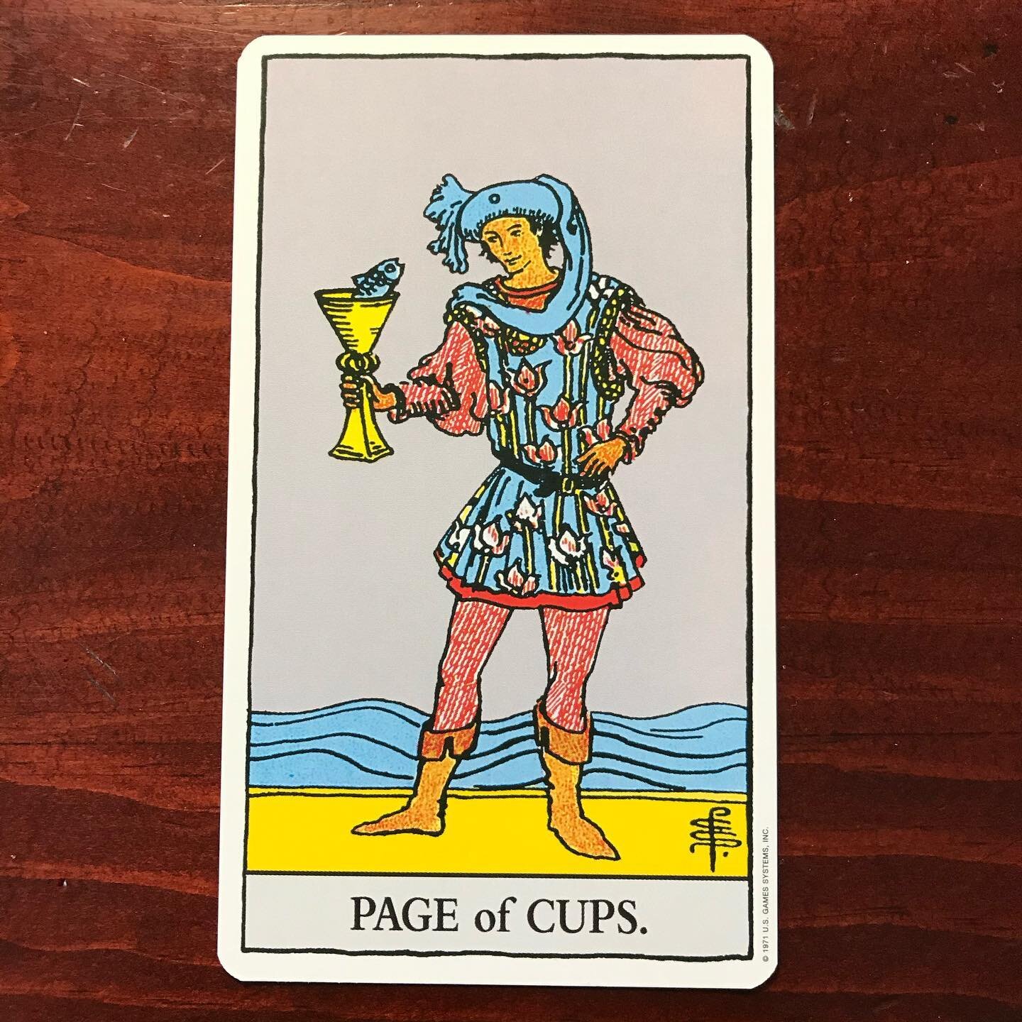 I’m including images of this card (also known as the Page or Lady of Cups) from other decks as well, because when a card appears repeatedly, I feel like it’s calling for examination from all angles. Other tarot practitioners’ and artists’ visual expression of a card’s meaning deepens and expands my own understanding.